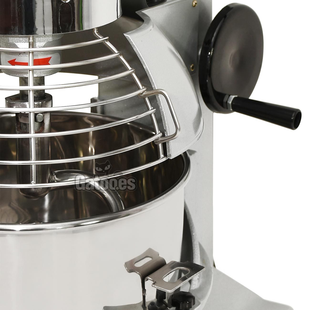 Para prolongar la vida útil de los engranajes, se recomienda apagar la máquina antes de cambiar la velocidad. Incluye un sistema elevador del bowl y una rejilla de seguridad que impide el funcionamiento si no está correctamente colocada. El bowl es extraíble y elevable para facilitar su limpieza.