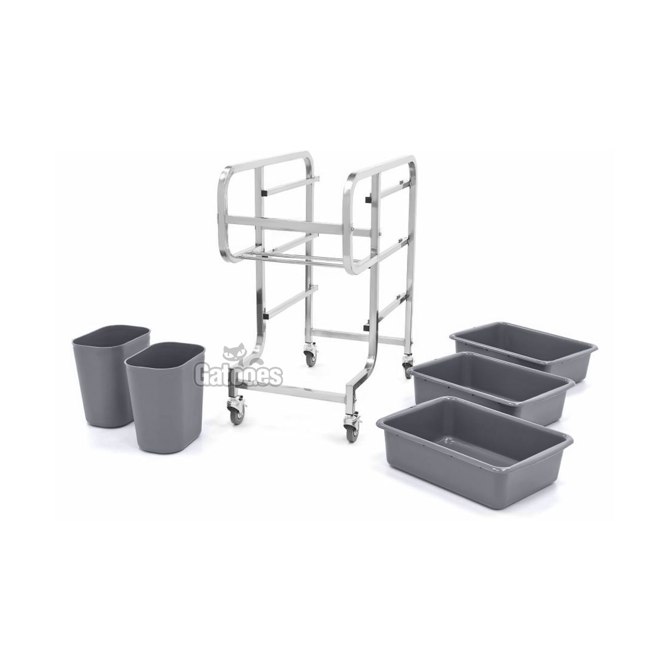 Carro de Limpieza de Acero Inoxidable. Con 5 Papeleras.