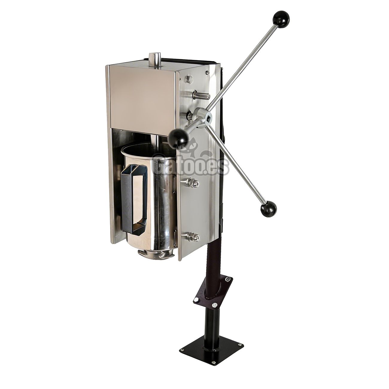 Su depósito tiene una capacidad de 3 kg, construido en acero inoxidable de gran calidad. Es una churrera para uso manual, especialmente robusta gracias a su caja de engranajes reforzados y cremallera con sistema de 2 marchas, la principal hacia delante es más lenta con mayor potencia para empujar la masa y la secundaria hacia atrás que es más rápida para extraer el émbolo y así reducir el tiempo de carga.