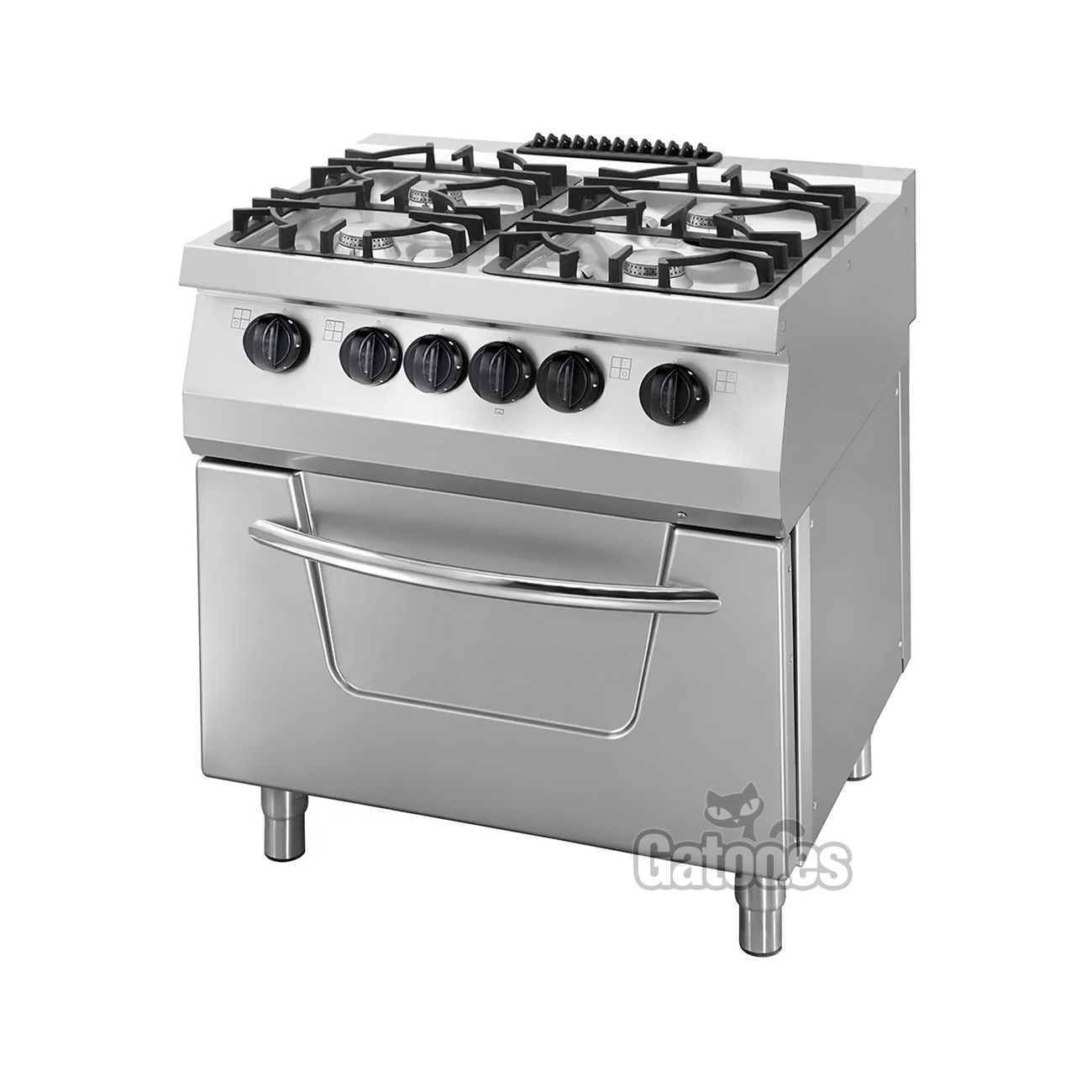 Cocina de Gas Industrial de 4 Fuegos KCE24. Con Horno (a gas o eléctrico)