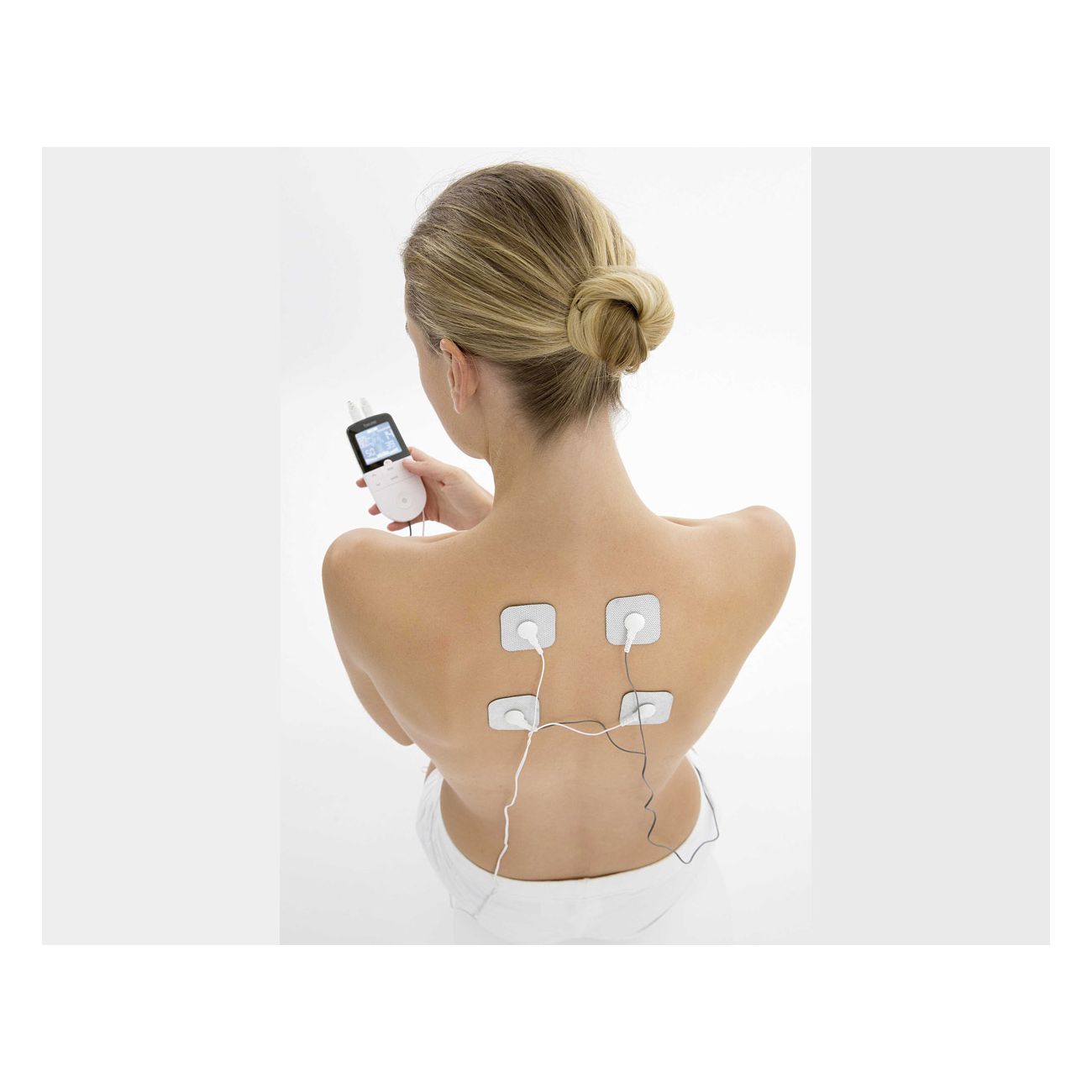 4 electrodos autoadhesivos. - 64 aplicaciones pre-programadas (TENS/EMS/masaje)