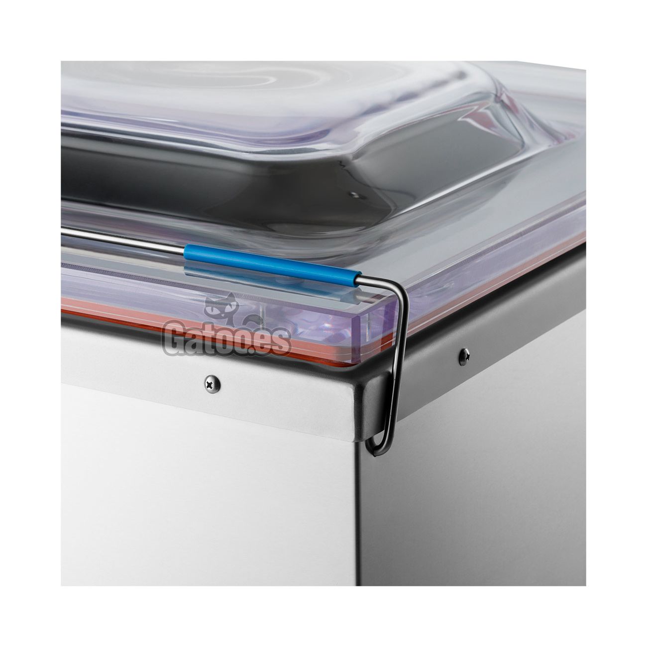 - Cubierta superior de metacrilato transparente muy resistente para el control del proceso de vacío.