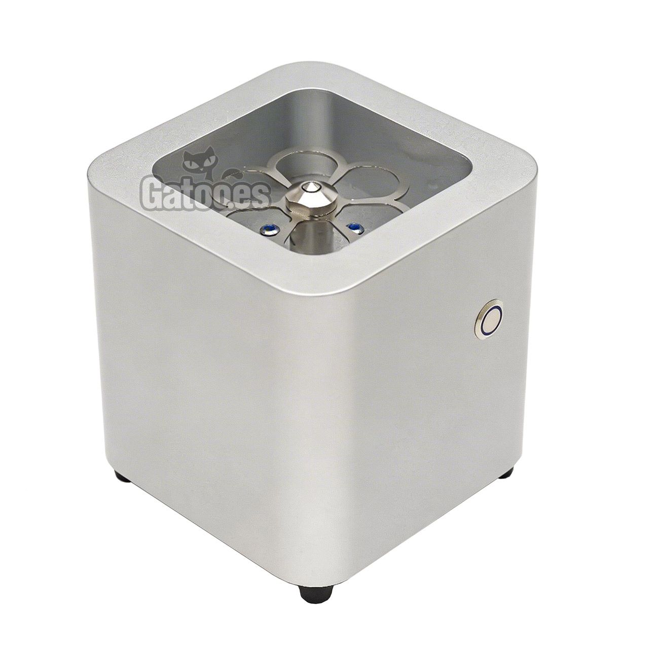El funcionamiento es sencillo e intuitivo: basta con colocar el vaso boca abajo sobre el equipo y accionar el pulsador para activar la salida de CO₂. En pocos segundos, el vaso estará listo para su uso.