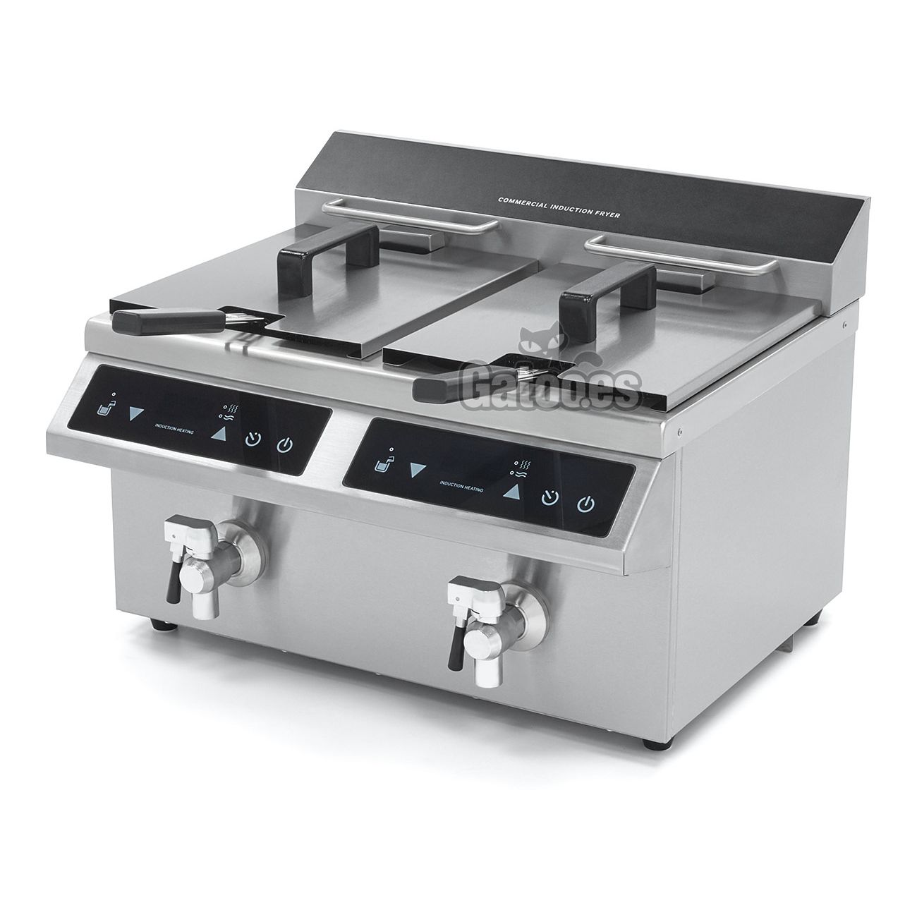 Es una freidora de inducción de doble cuba de muy alta calidad con cubas embutidas de cantos redondeados, fabricada en acero inoxidable recomendada para negocios de hostelería y locales de alimentación.