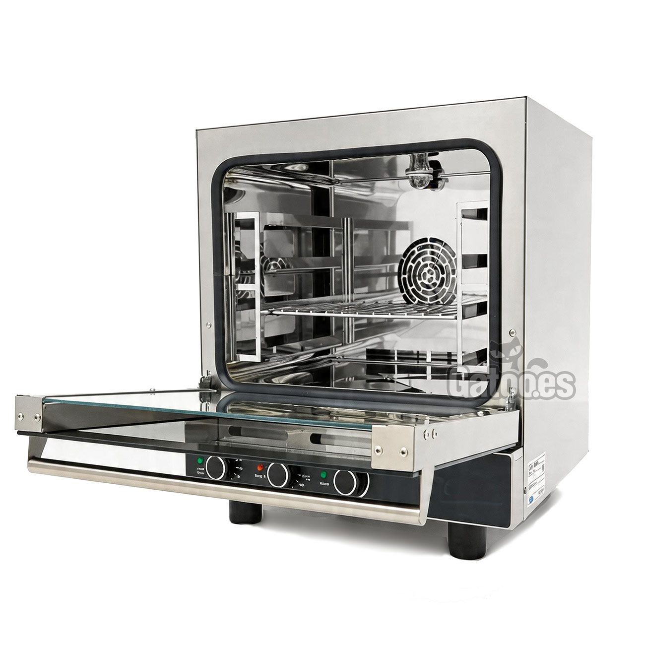 Su diseño compacto lo convierte en una solución ideal para cocinas profesionales con espacio reducido. La puerta cuenta con doble acristalamiento térmico que mejora la eficiencia energética y la seguridad durante el uso.