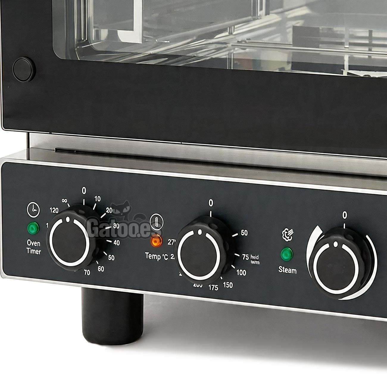 El panel de control analógico permite ajustar fácilmente los parámetros clave: temperatura, tiempo y nivel de vapor. Su uso intuitivo facilita el trabajo diario en cocina sin necesidad de configuraciones complejas.