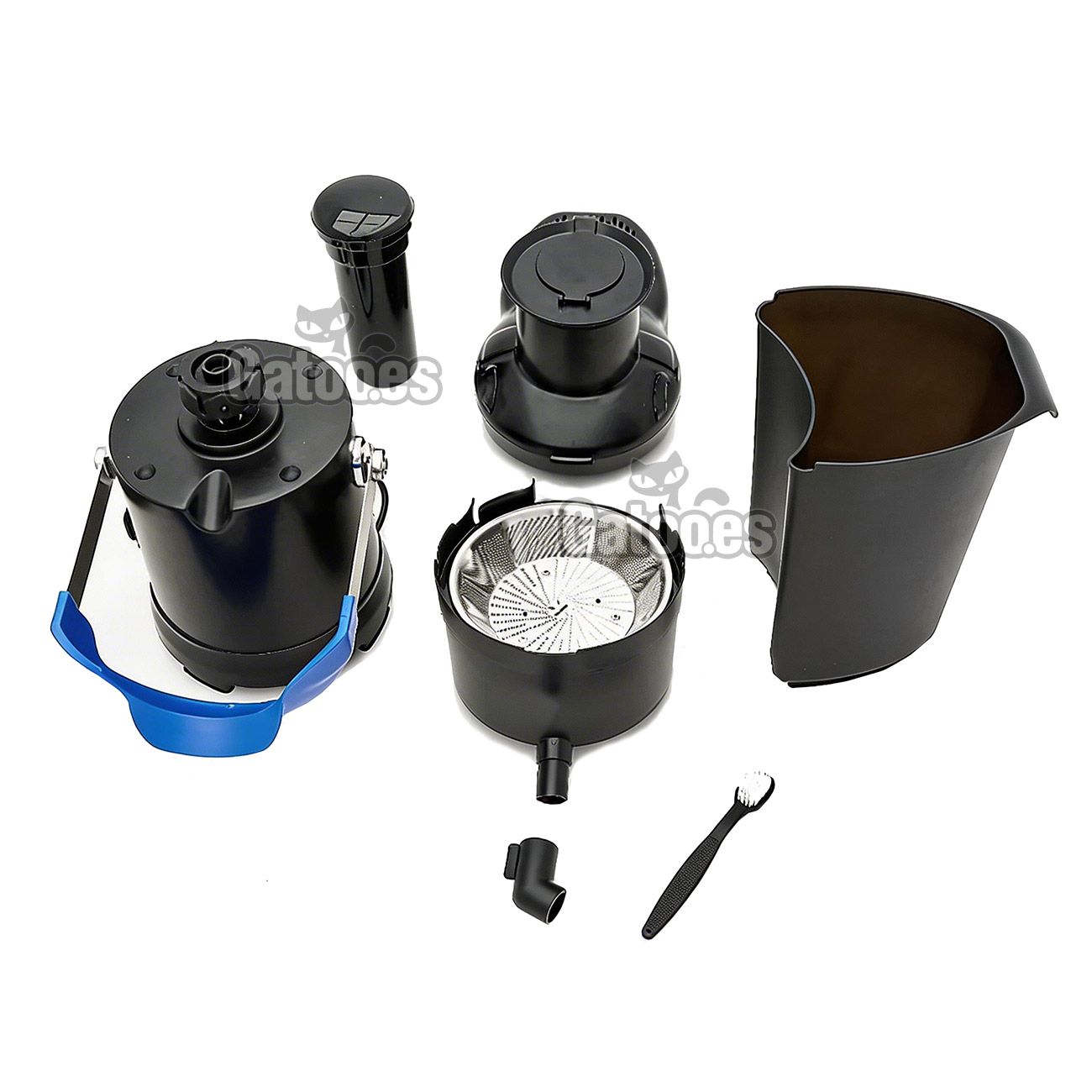 La boca de entrada de Ø7,5 cm facilita introducir piezas grandes sin necesidad de cortarlas en exceso. El equipo incorpora un grifo frontal que permite servir el zumo directamente en el vaso, agilizando el proceso y evitando manipulaciones innecesarias.