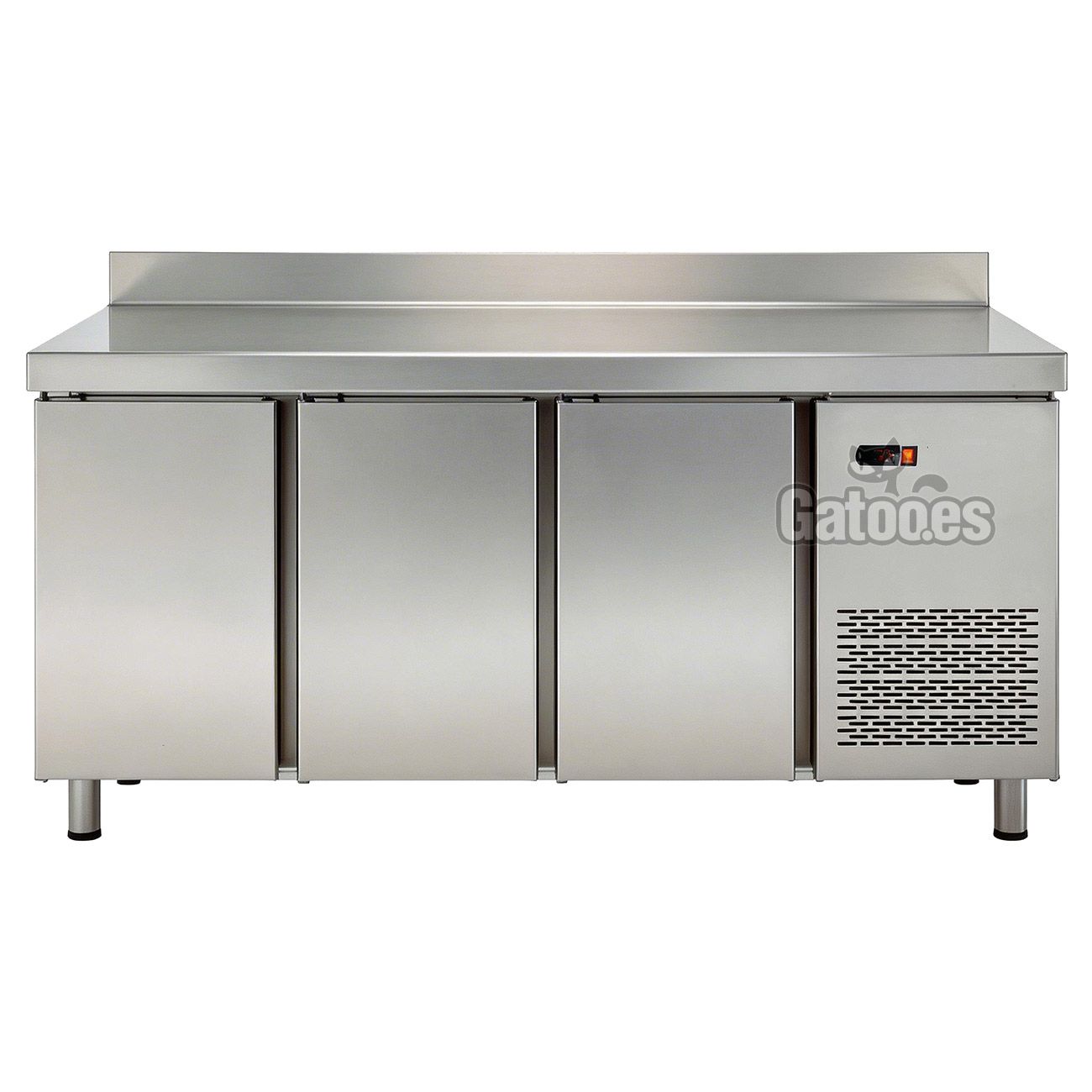 Es un mostrador refrigerado de 3 puertas de construcción exterior e interior en Acero Inoxidable AISI 304, incluyendo su encimera de trabajo. Dispone en la base de 4 patas Inox robustas regulables en altura de 85 a 90 cm. Se puede instalar detrás de una barra, mostrador o en cocinas profesionales de negocios de hotelería como cafeterías, restaurantes, bares, hoteles, pubs, etc.