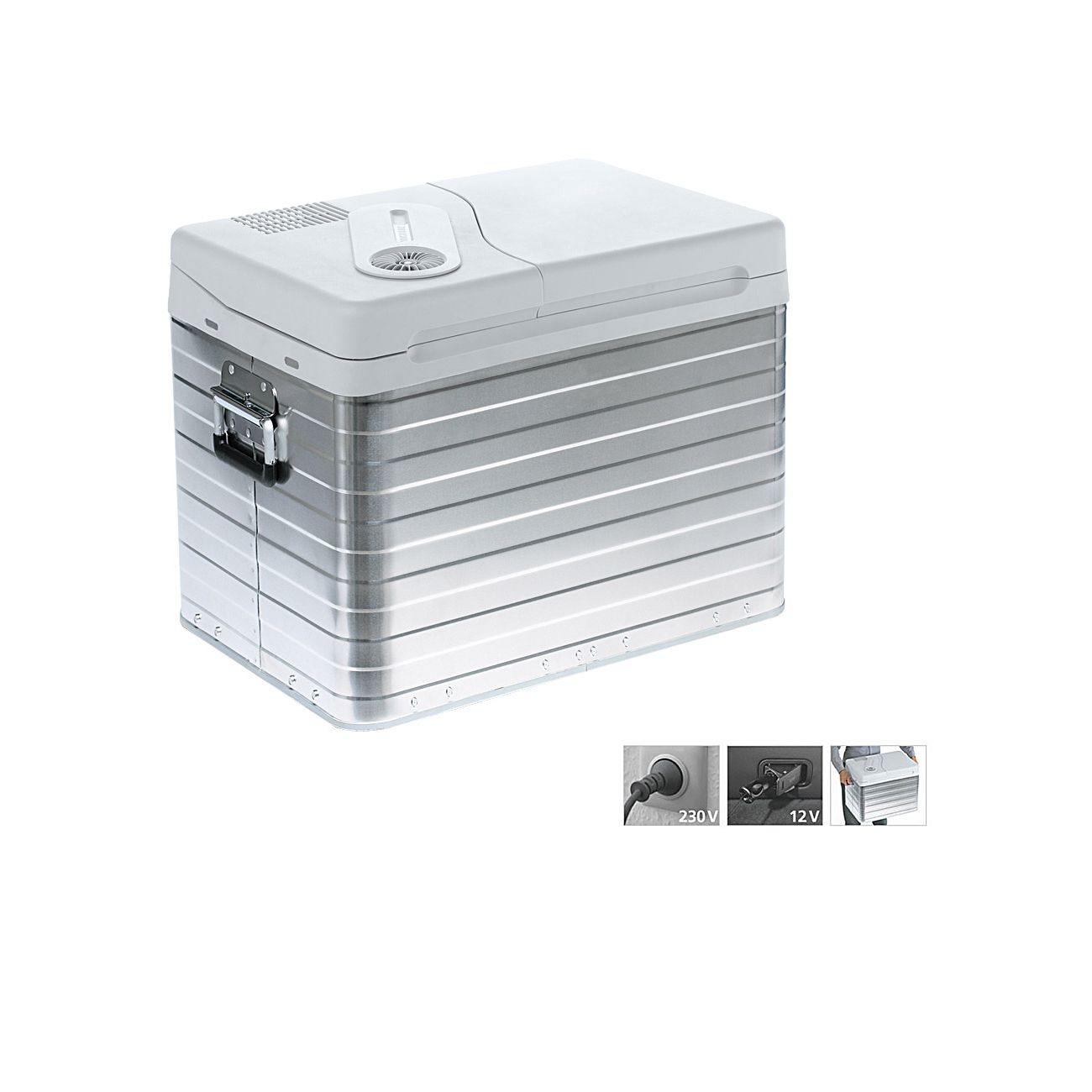 Una nevera robusta con carcasa construida en alumnio, puedes emplearla en casa a 220V. o en el coche a 12V.