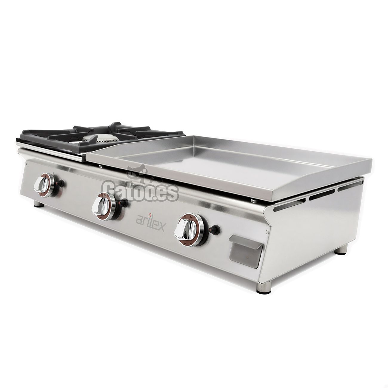 - Combina plancha y cocina en un solo equipo, optimizando el espacio en la cocina.